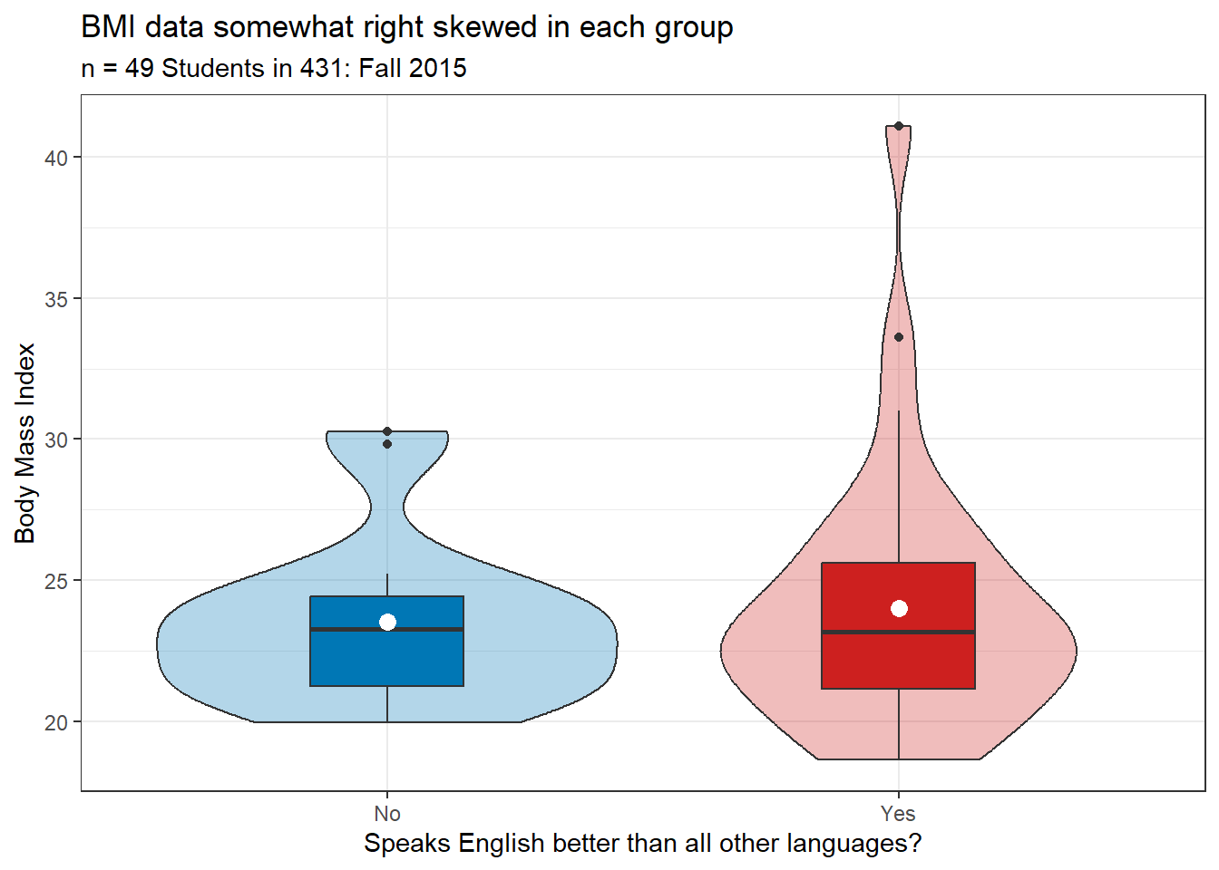 r_before: Before taking 431, had you ever used R before? (Yes, No)english: Is English the language you speak better than any other? (Yes, No)