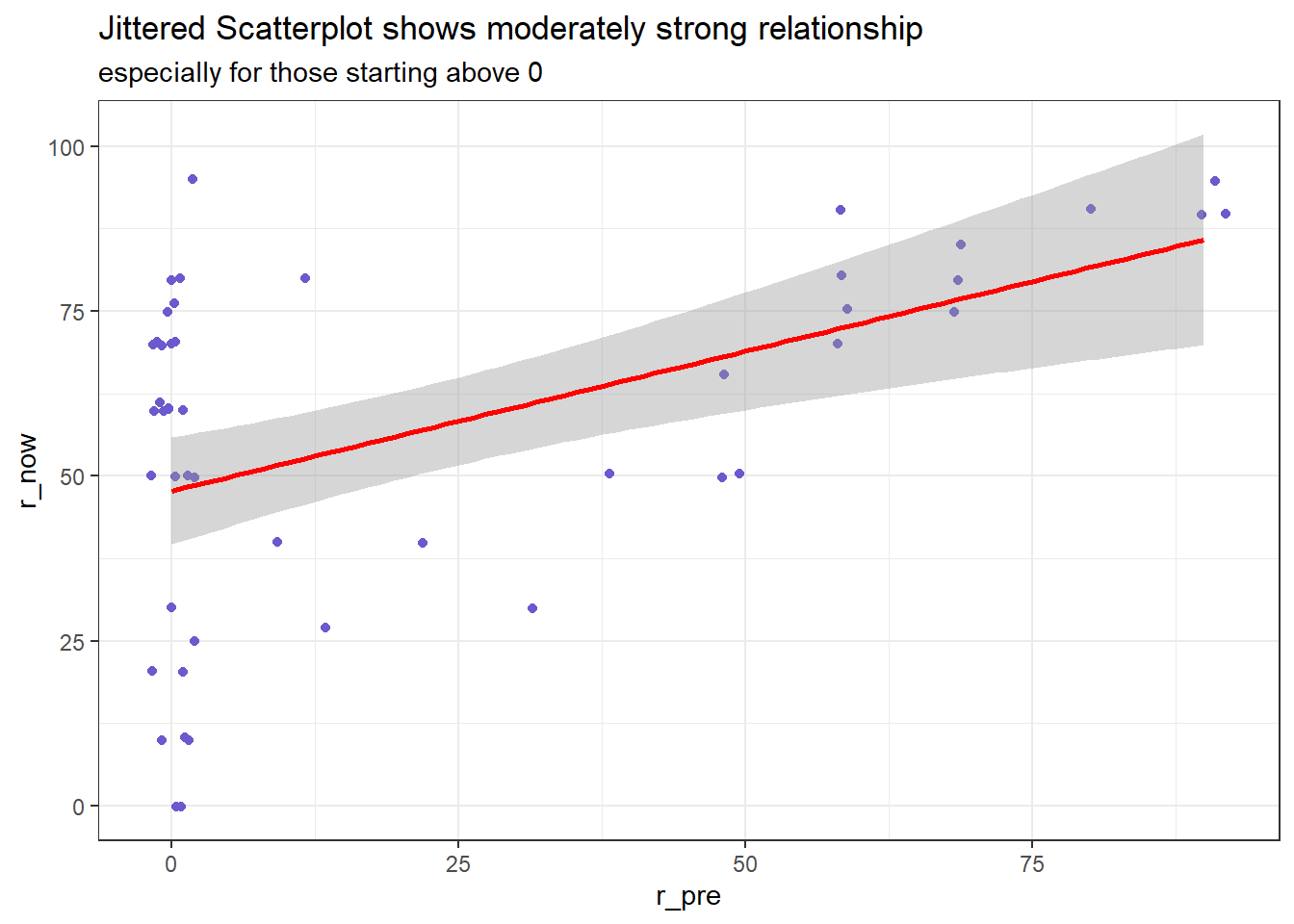 r_pre: Prior to taking 431, I was totally confident and comfortable with using R. (0 = Strongly Disagree, 100 = Strongly Agree)r_now: Right now, I am totally confident and comfortable with using R. (0 = Strongly Disagree, 100 = Strongly Agree)comfort_431: I am very comfortable with my understanding of the material discussed so far in 431.