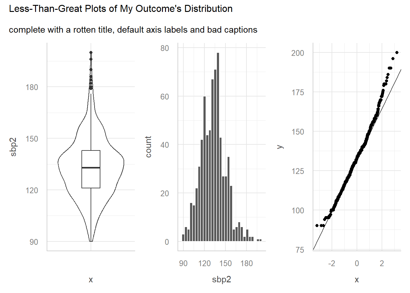 We have no missing values in our outcome or our key predictor, and each of the values look plausible, so we’ll move on.